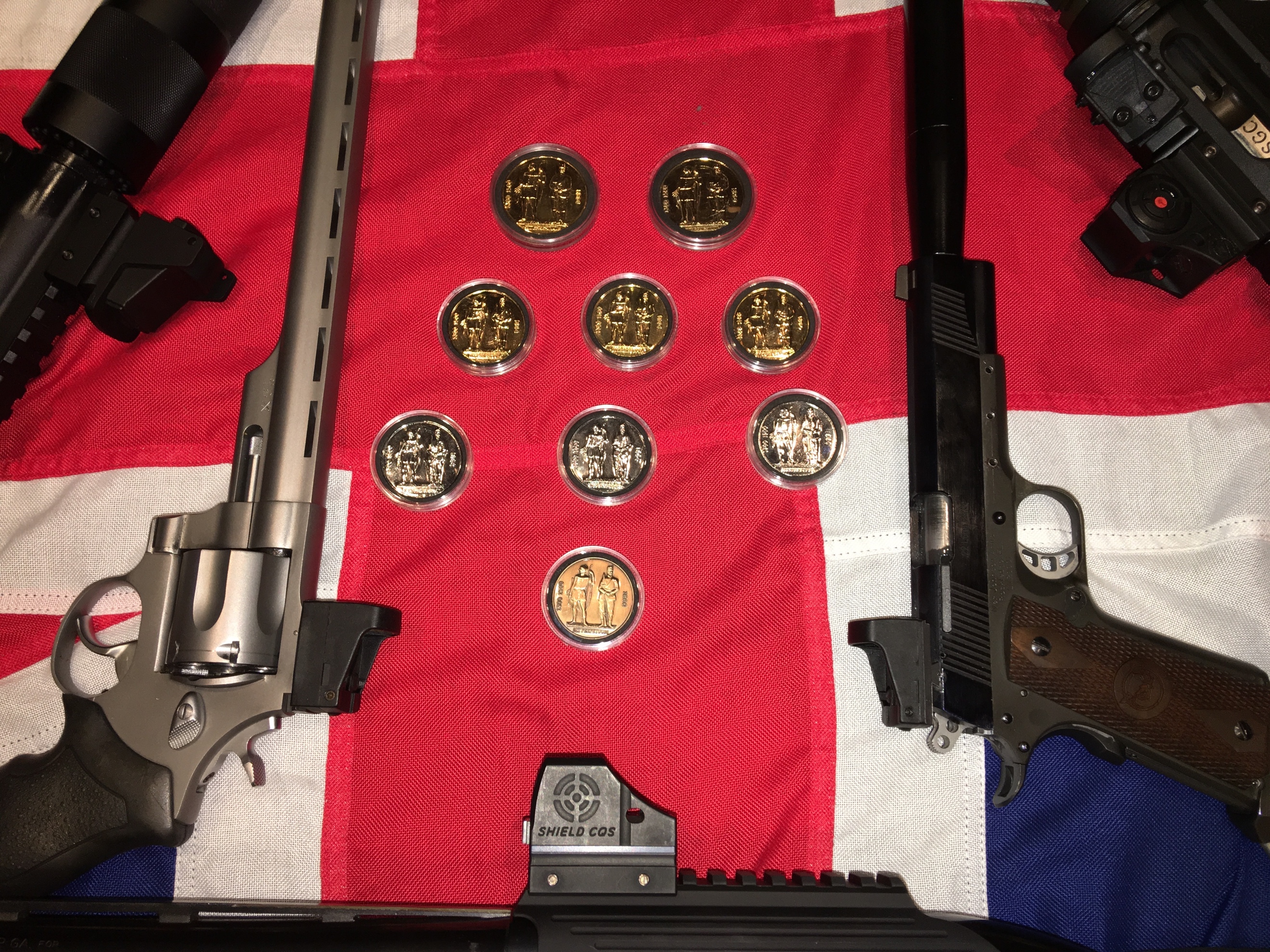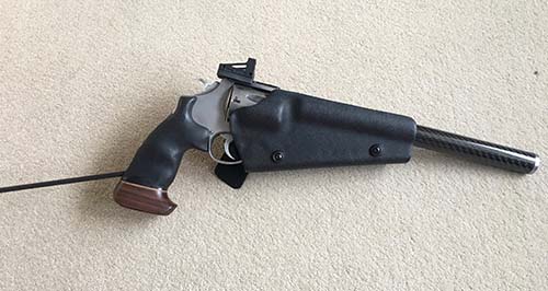 Given the diverse nature of the discipline you will find examples of all types of long barrelled pistols and revolvers with various sighting systems and ancillary equipment in use. Various different sighting systems are also used and while many competitors use a red dot or telescopic sight for the the majority stay with conventional iron sights.