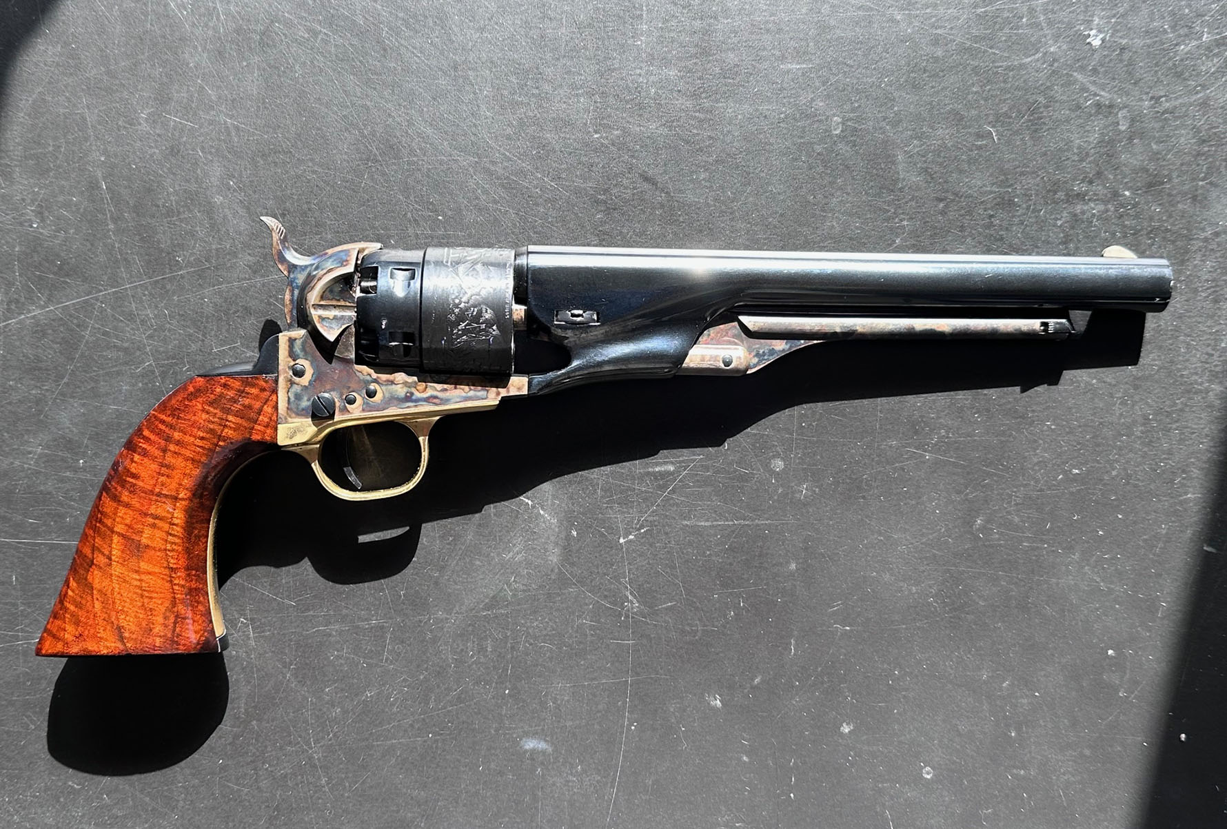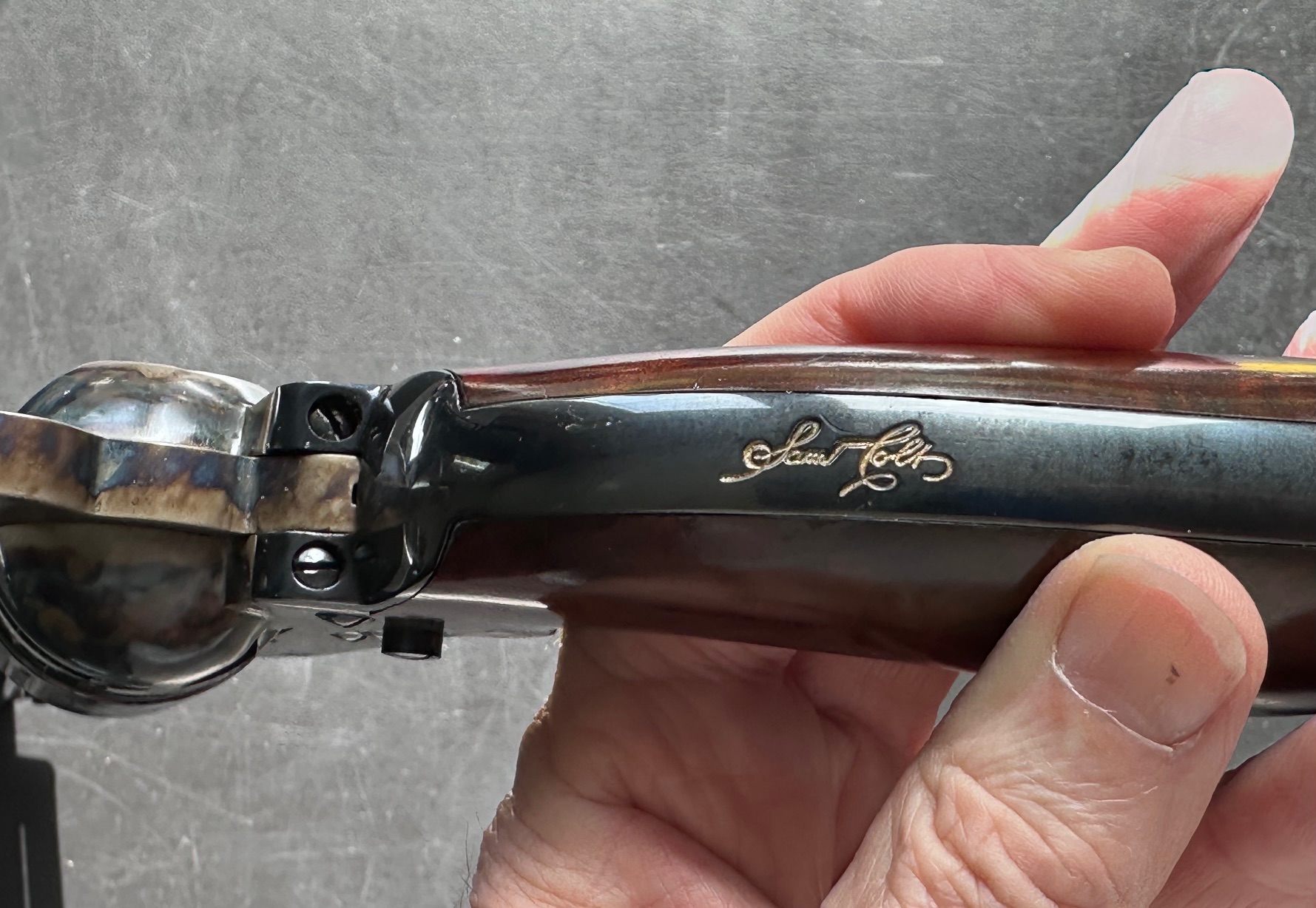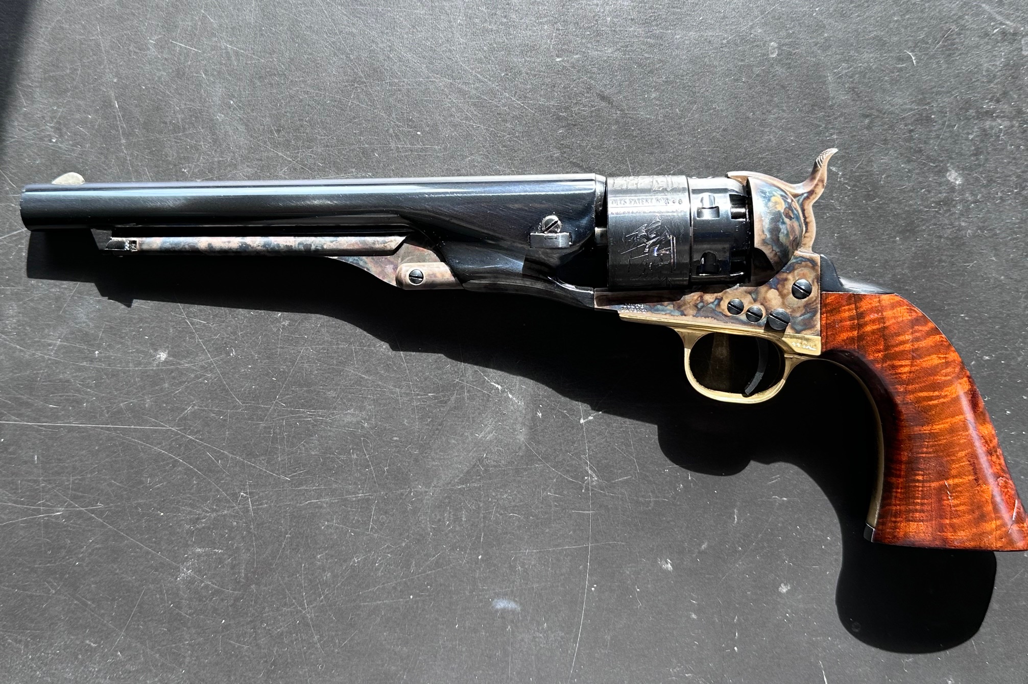 Original Colt Navy .44 2nd generation revolver with engraved stock and box.